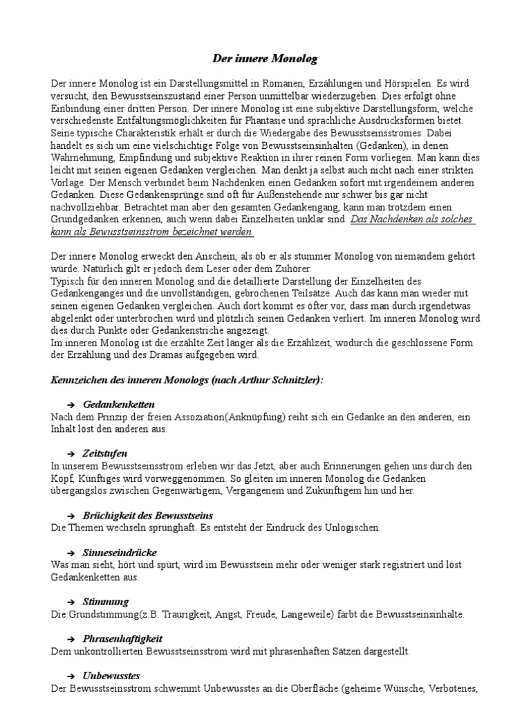 Der beste beispiel ist die novelle von arthur schnitzler : Und wie schreibt man ihn?das erkläre ich euch in diesem video!kapitel0:00 einleitung0:10 definit. Innerer monolog beispiel innerer monolog beispiele innerer monolog beispieltexte innerer monolog beispieltexte pdf. Manchmal ist es ein selbstgespräch oder ein innerer monolog: Eine andere person kommt nicht zu wort.